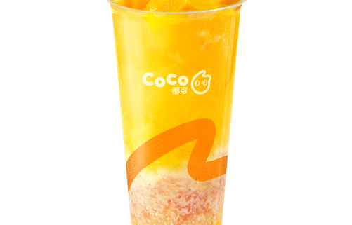Te con leche con mango y pudin
